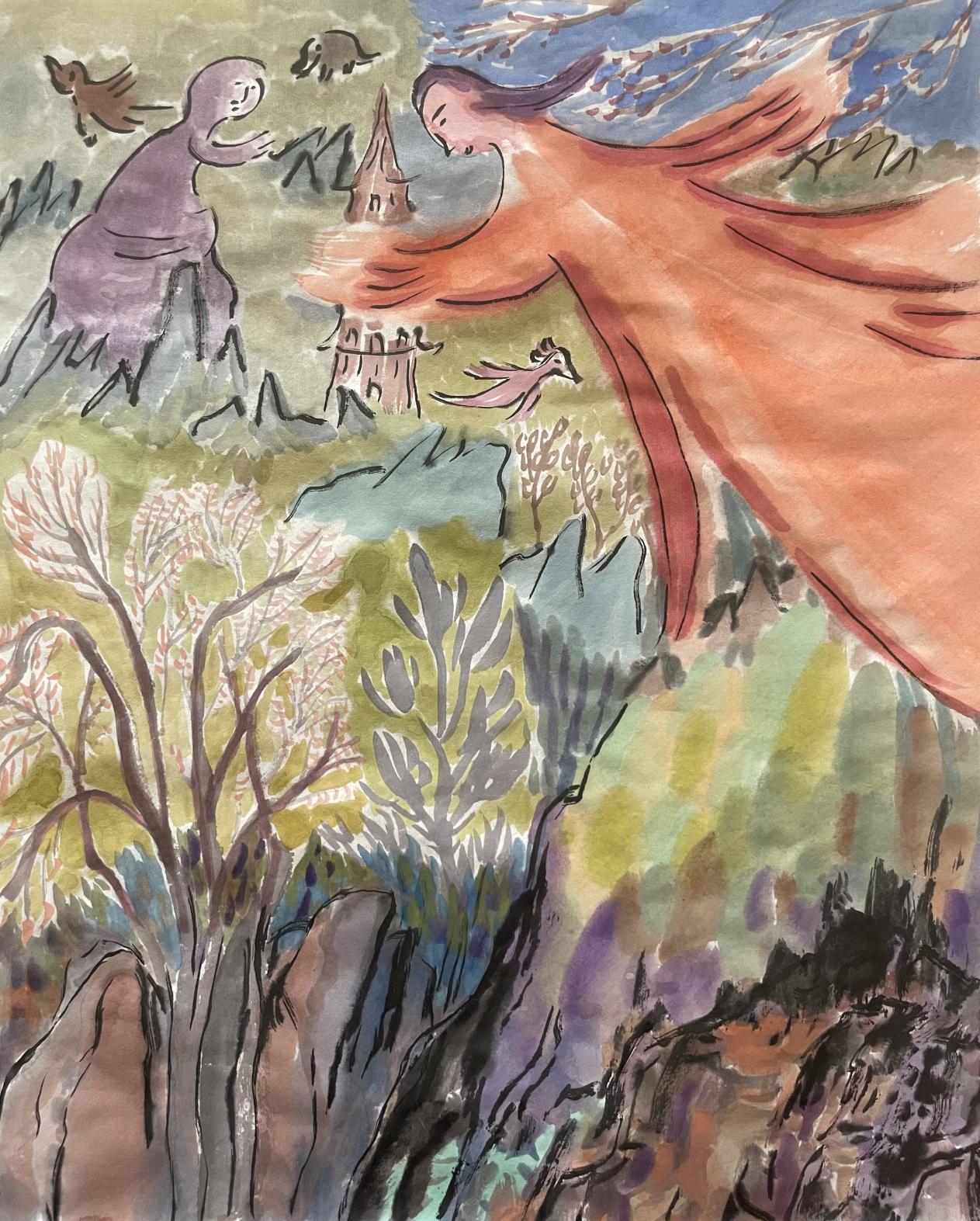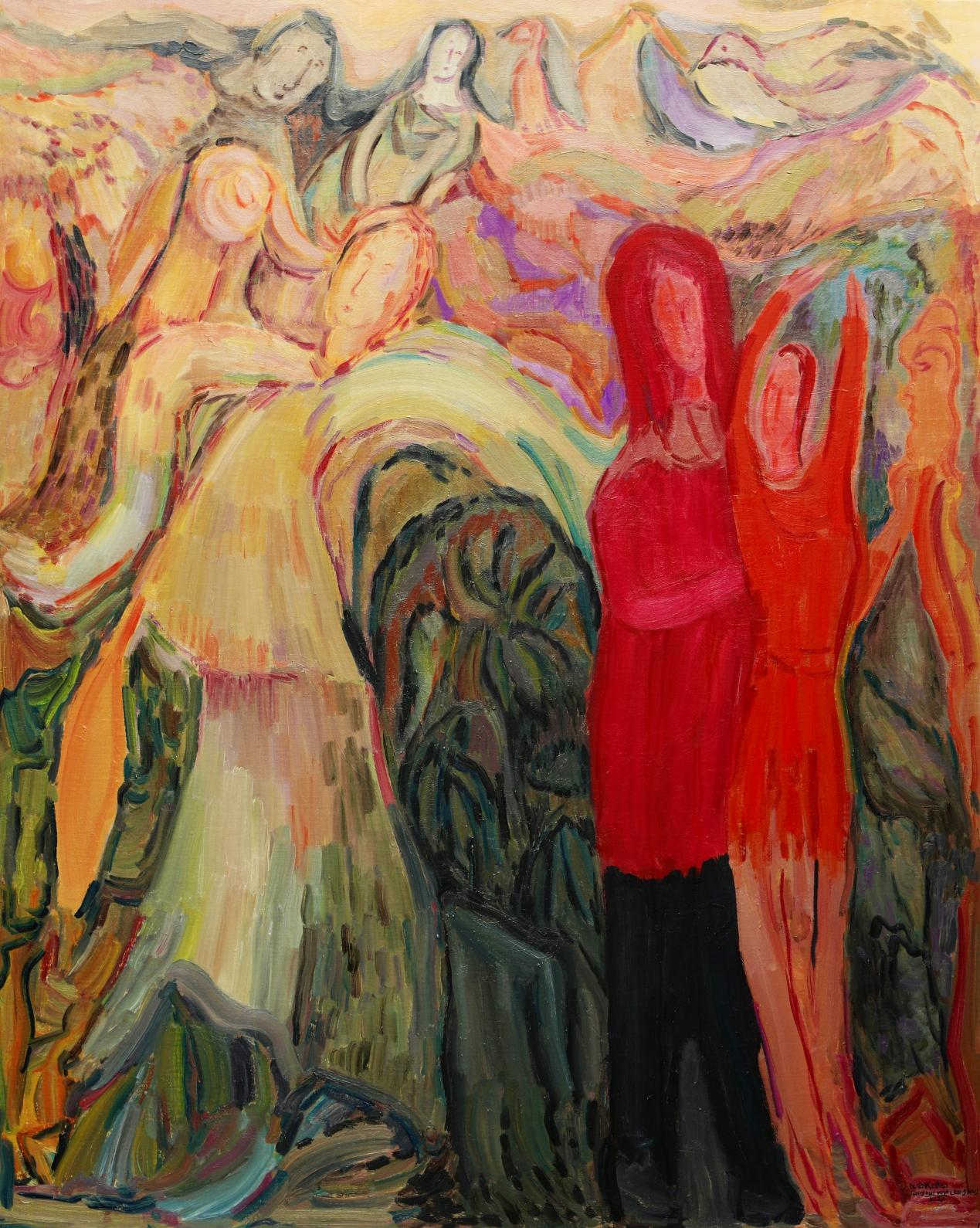 空无(江会武)的这场四个月修行,是向当代人献上的一部视觉《心经》:他以美拉德色系为舟(赭石作沙漠,暖金化佛光,棕褐凝经卷),以曲弧为楫(禁绝直线以破执念),载着我们穿越三重时空:敦煌矿物的转世、佛月悬照的真空、众生朝圣的声景。