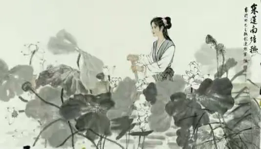 采莲南塘秋,莲花过人头。低头弄莲子,莲花过人头。