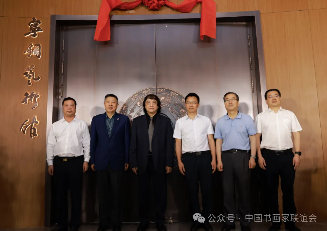 最后,才大颖、宁钢、孟树峰与黄忠、罗卫国、方淼滨共同为余江宁钢艺术馆揭牌。