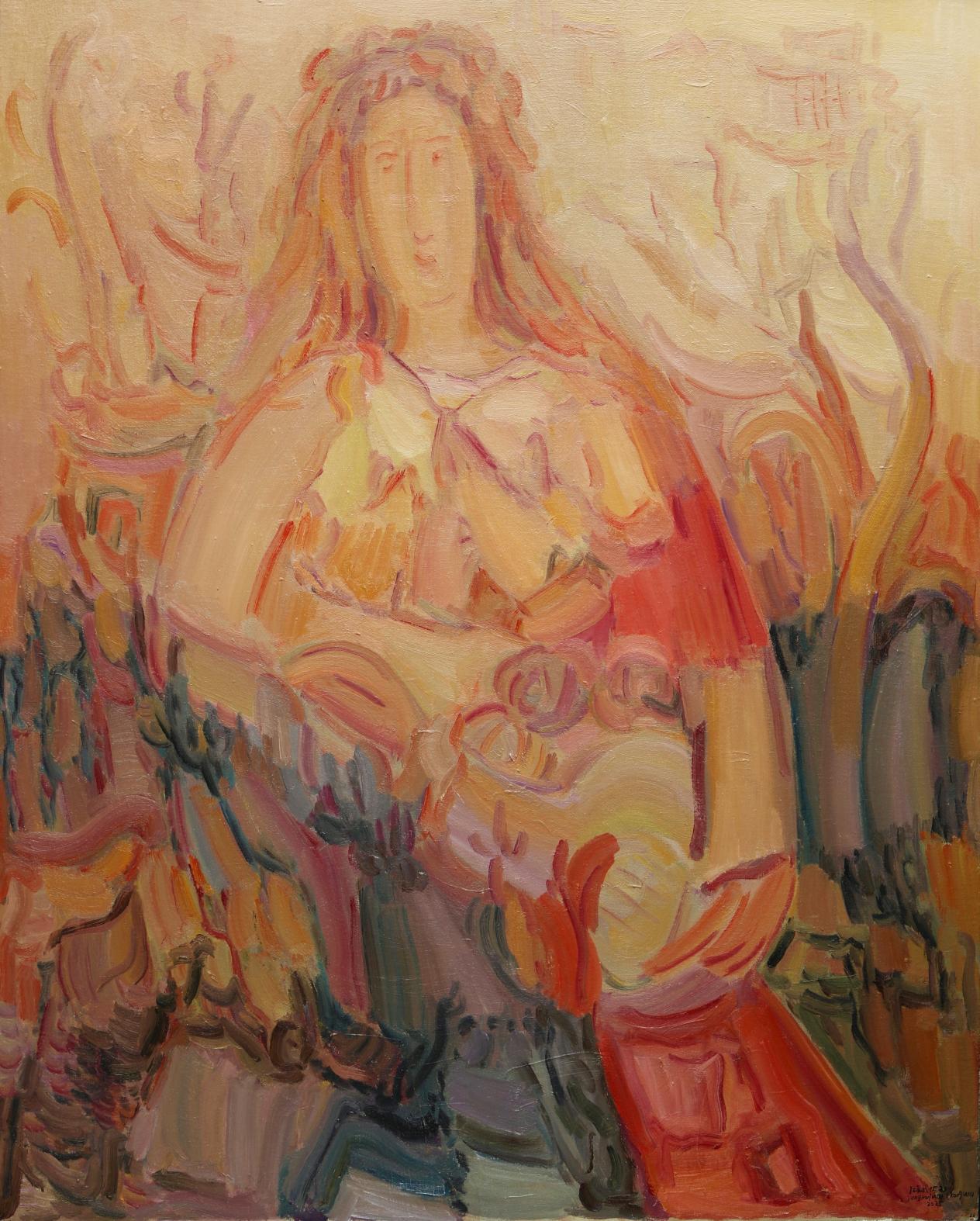 美拉德色系——赭褐、焦茶、琥珀、赭石——在画布上如被太阳炙烤过的香料,缓缓释放出矿物与火焰的味道。空无用心流鬃笔毛刷刮刀去描摹飞天、月海,让颜料本身的温度去触碰北魏的朱砂、唐代的金粉,以及阿波罗带回的月壤颗粒。敦煌的剥落与月表的陨石坑,帕米尔东的阿克苏地区龟慈也在遥相对歌此刻共享同一种裂纹:它们都是时间写给光线的情书。