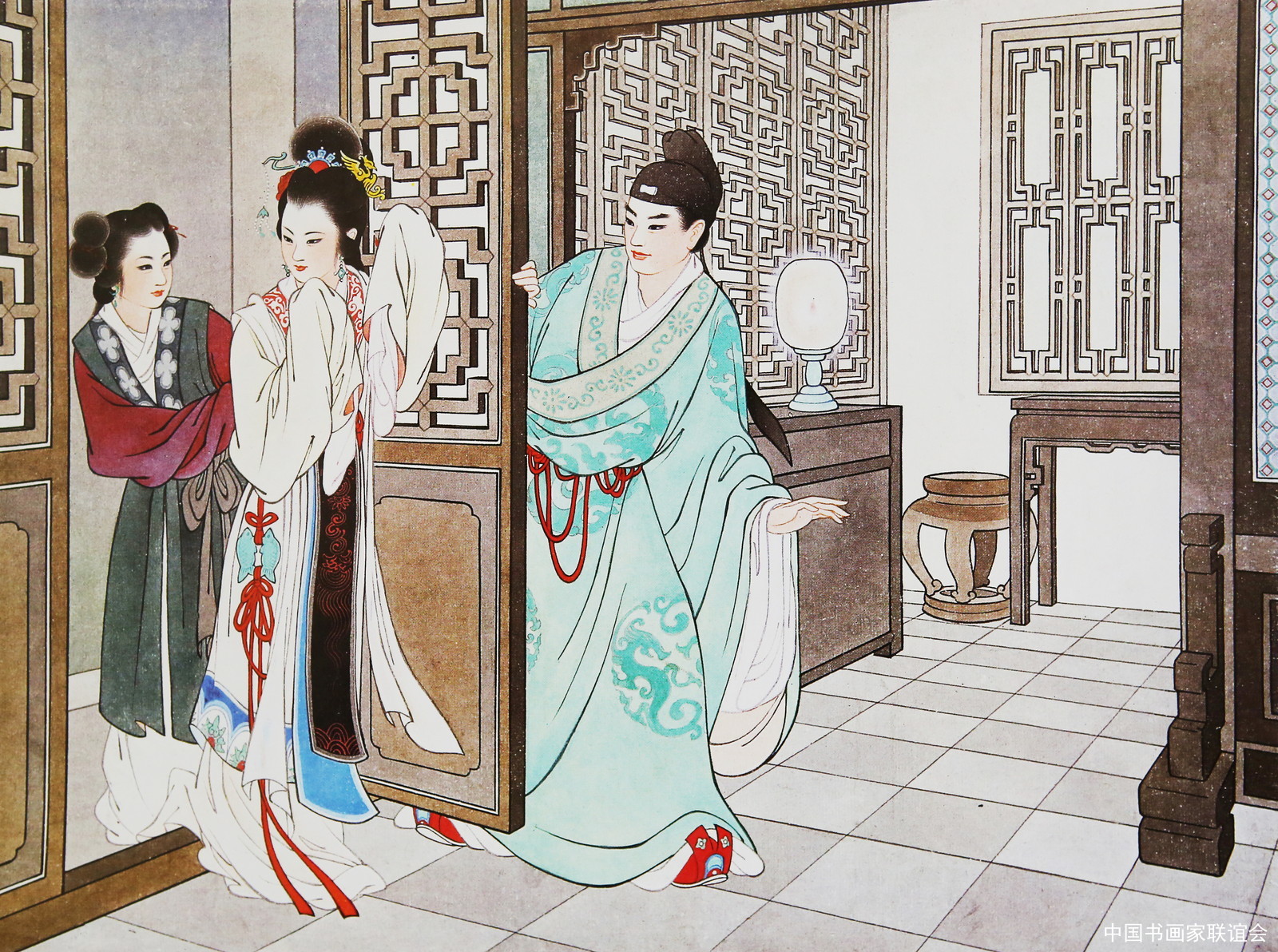 《西厢记-听琴》图,彩色版
