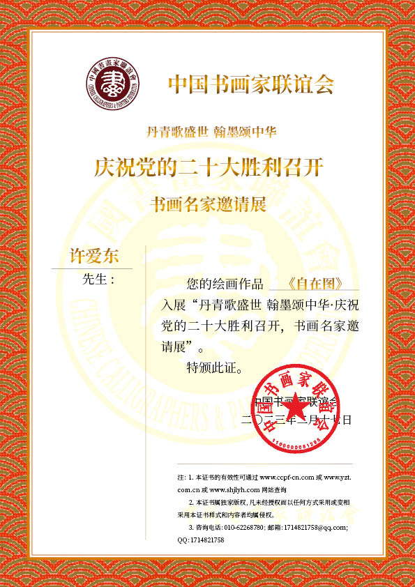 “丹青歌盛世 翰墨颂中华”书画名家邀请展入展证书【绘画篇】(7)