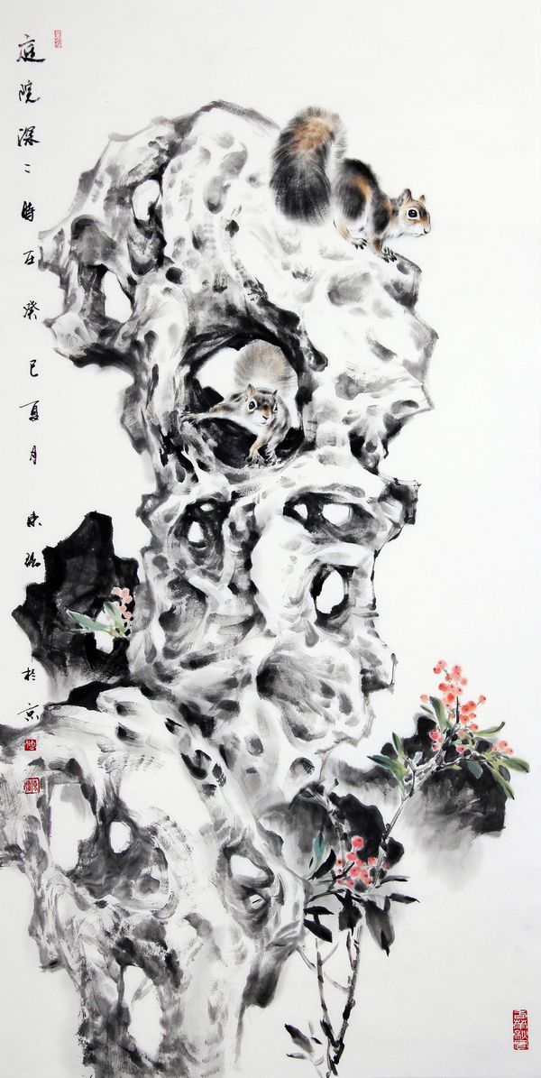 修东强,1976年生于山东龙口。2002年以优异成绩毕业于北京教育学院国画系,2004年进入中央美院研修深造。主工写意花鸟及人物,尤擅画马和各种动物。在院校期间大量的造型训练和对古今中外美术理论的深入研究使其有着良好的驾驭不同题材的能力和对绘画内涵的深层理解,在传统与现代的艺术长河自由游弋。其笔下的花鸟画作品设色清新雅致却不艳俗,运笔酣畅遒劲而不失温婉和细腻。特别值得一提的是他的工兼写动物画,在充分吸收前辈名家表现技巧的同时融入自己对笔墨的独特理解,利用生宣和毛笔的特性通过“丝毛”的画法表现动物的毛发质感,既符合客观规律又有一种独特的形式美感;在强调造型结构准确的同时也深谙阿堵传神的道理,极力刻画动物的神情特征,在表现不同动物的神态上下足功夫,如猛兽之目光炯炯,威猛强悍,小动物之天真活泼,稚拙可爱,以达到形备而神足的艺术境界。其人物画造型准确,意蕴深远,常以历史人物为蓝本,通过中国画的笔墨轻松刻画人物的神情体貌,以达到传情写神的目的。